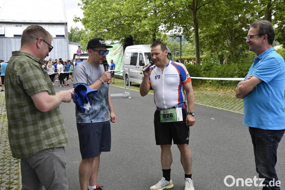 Als der Firmenlauf Amberg-Sulzbach am Mittwoch, 13. Juli, pünktlich um 18.30 Uhr gestartet war, wagte Moderator Andreas Hahn einen Tipp. Er vermutete, dass der erste der insgesamt knapp 1400 Teilnehmer nach 19 Minuten und 20 Sekunden im Ziel sein könnte. Dieter Paintner, Vorstand der als Sponsor auftretenden Volksbank-Raiffeisenbank, hielt dagegen: "Ich sage 19 Minuten und 19 Sekunden. Der Erste ist auf jeden Fall schneller." Und so war es dann auch. Nach 16 Minuten und 29 Sekunden lief Markus Legat, Chef von Sport Heckmann aus Sulzbach-Rosenberg, unter lautem Beifall und Jubel ins Ziel, das sich wie der Start direkt vor der Eishalle in Amberg befand.