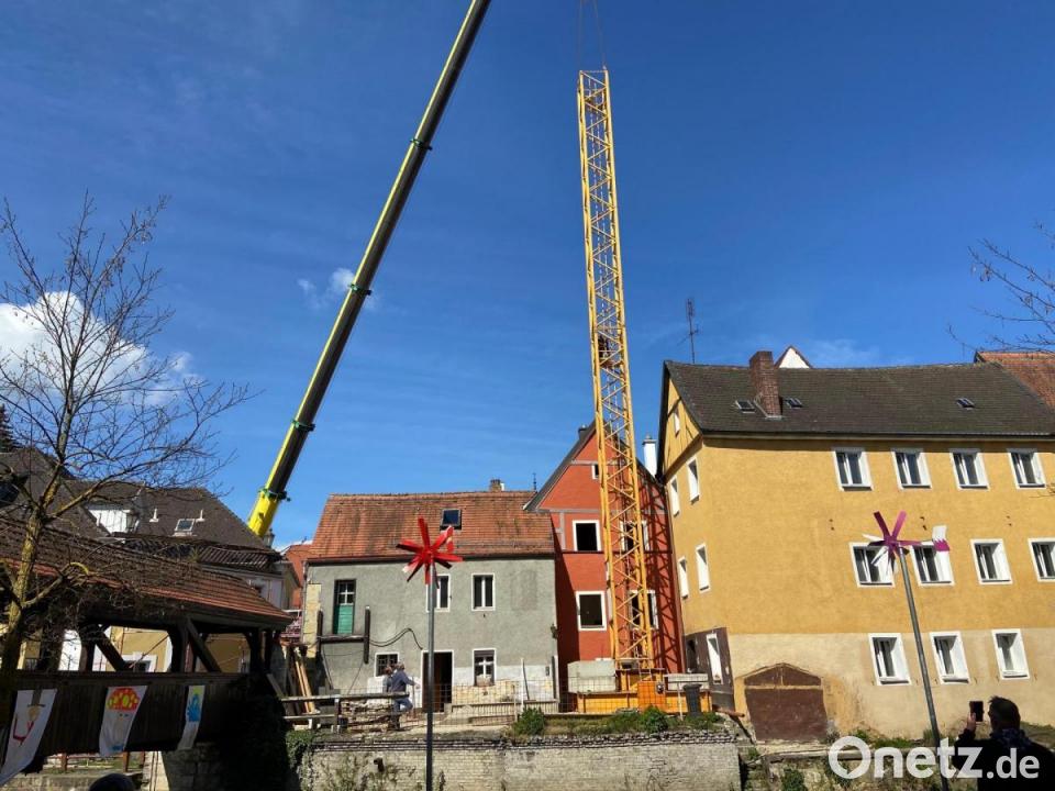 Wenn in der historischen Amberger Altstadt ein Kran aufgestellt wird, dann ist das an sich schon eine kleine Sensation. Die engen Straßen und Gassen bieten kaum einen Platz für den Antransport und das Aufstellung eines Baukrans, oft ist Millimeterarbeit erforderlich, um das Werk ohne Schäden über die Bühne zu bringen.