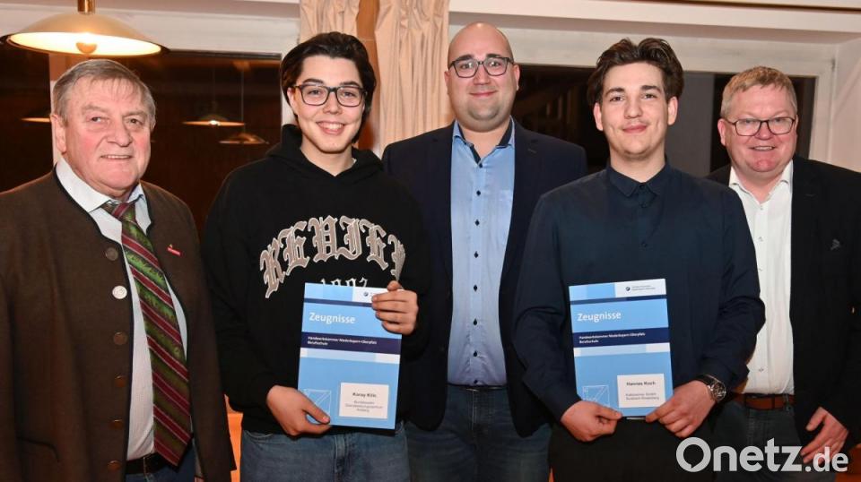Cerny räumte ein, dass sich derzeit die Arbeitswelt rasant verändere. In 20 oder 30 Jahren müssten sicher andere Herausforderungen bewältigt werden. Aber Leute, die anpacken könnten, "brauchen wir immer". Innungsobermeister Lukas Friedrich meinte, für die beiden neuen Junggesellen sei es eine besondere Lehrabschlussfeier. Denn die Zahl der Ehrengäste übertreffe die der Absolventen. Nur Koray Kilic, der im Bundeswehr-Dienstleistungszentrum Amberg Metallbauer gelernt hat, sowie Hannes Koch (Metallbau Kalkbrenner Edelstahltechnik GmbH in Sulzbach-Rosenberg) hätten sich heuer der Gesellenprüfung gestellt, das Ausbildungsziel erreicht und bekämen nun ihre Gesellenbriefe.
