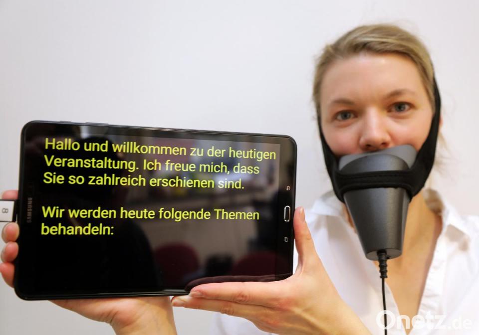 Dabei hilft ein spezielles Gerät, das wie eine Maske aussieht: "Der Text erscheint je nach Situation auf einem Bildschirm oder einer Leinwand und kann sofort mitgelesen werden. Dadurch, dass ihnen keine Informationen mehr entgehen, können Betroffene am gesellschaftlichen Leben teilhaben und sind voll integriert." Der Beruf des Schriftdolmetschers lasse sich jedoch keinesfalls mit dem einer Bürokraft gleichstellen. Eine schnelle Tippgeschwindigkeit allein reiche nicht aus. Beim Schriftdolmetschen handele es sich um eine auf den Betroffenen zugeschnittene Dienstleistung. Grad und Zeitpunkt des Eintritts der Hörschädigung seien ausschlaggebende Faktoren dafür, wie der Text produziert wird.