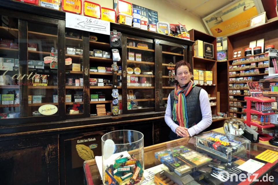 "Dass ich den Laden nun aufgeben muss, bricht mir das Herz", sagt die Ladeninhaberin hinter der Theke, als sie gegen die Tränen ankämpft. Doch die feuchten Augen der gestandenen Geschäftsfrau verschwinden schnell, wenn im Fünf-Minuten-Takt Kunden in den Laden kommen. Viele kennt Astrid Freiwald persönlich und erfüllte auf Bestellung auch Extrawünsche. "Sehr, sehr schade", sagt ein junger Mann, als er von der Schließung erfährt. Nicht nur die vielen Stammkunden erzählen von der bewegten Vergangenheit des Ladens, auch die Möbel im Inneren tun das in gewisser Weise. Astrid Freiwald erklärt: "Der große, schwarze Schrank, hinter mir, der steht seit 1933 an Ort und Stelle und wurde noch nie verschoben." Ein selbstgebauter Humidor neben der Theke präsentiert besondere Zigarren. Überall hängt Zigarettenwerbung von längst vergessenen Marken wie "Exotic Mango" oder "Reval".