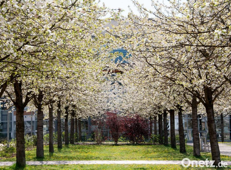 Frühling an der OTH Amberg-Weiden: Die weißen Blüten leuchten nur wenige Tage und bieten einen Blick, der zum Verweilen einlädt.