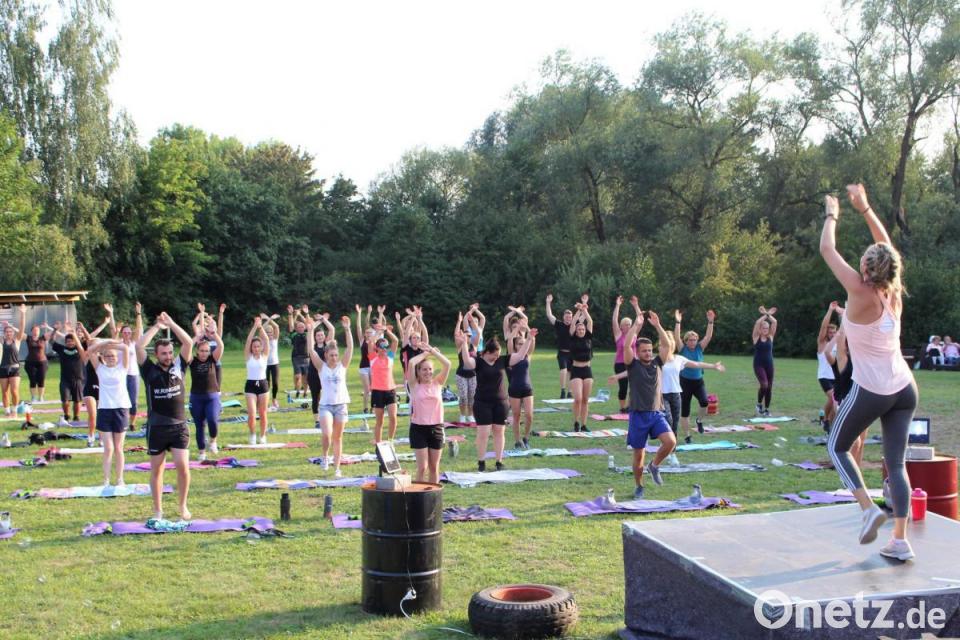 Kraft, Ausdauer und Kondition. Das sind die Schlagwörter, mit denen Christian Adamczyk das Sportereignis im Well-Fine-Zentrum beschrieb. Der Fitness-Hype sei überall, nur die Amberger würden noch etwas schlafen. Mit der stellvertretenden Geschäftsleiterin Samira Gmelch setzte er die Großstadt-Idee um. „Nicht jeder mag an Geräten trainieren und vielen ist es unangenehm ins Studio zu gehen“, weiß Adamczyk. Deshalb war es den beiden Trainern wichtig, Muffel aus der Reserve zu locken und ihnen professionelle Unterstützung zu bieten. Auch, damit sie in Zukunft ihrem Körper etwas Gutes tun. Mehr als 50 Sportbegeisterte trainierten im Takt auf der großen Wiese zwischen Kanuverleih an der Vils und der Drahthammerstraße. Fetzige Musik hallte dazu aus den Lautsprechern. „Und eins, und zwei, und tiefer – noch tiefer. Gebt alles!“ Samira Gmelch gab Anweisungen und gönnte allen Teilnehmern regelmäßige Trinkpausen. Bei fast 30 Grad im Schatten ein Muss. Für die vielen Kinder startete die angekündigte „Party danach“, noch bevor sich die Erwachsenen sich ihrem Bewegungsdrang widmeten.