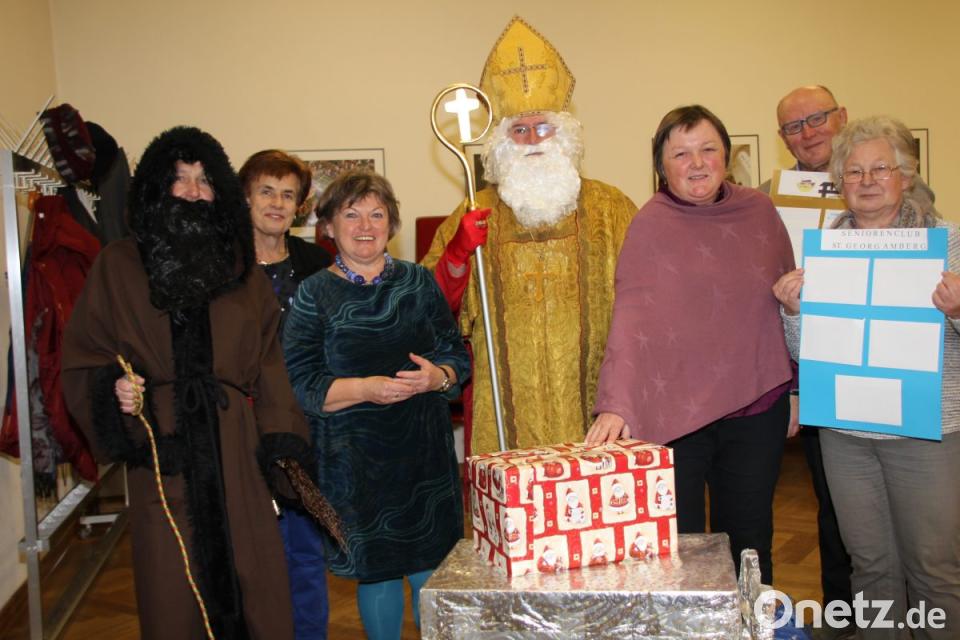 Die Vorteile liegen aus Sicht der Organisatoren auf der Hand: mehr Gäste, mehr Kontakt- und Austauschmöglichkeiten, weniger Aufwand im Vorfeld, da die Aufgaben auf mehrere Schultern verteilt werden. Franz Hirmer (KAB), Maria Paulus (Frauenbund) und Theresia Thamme vom Seniorenclub wollen das auch in Zukunft so handhaben. Höhepunkt der Adventsfeier war der Besuch des Nikolauses. Er hatte heuer nicht nur für die Gäste kleine Päckchen dabei, sondern auch ein großes Paket. Das übergab er Maria Paulus für die Päckchenaktion, mit der die Frauen an Weihnachten Bedürftigen aus der Pfarrei mit Lebensmitteln und Gutscheinen helfen. Die Organisation lag in Händen von Beate Huber und Marianne Bumeißl. Franz Hirmer steuerte zehn Gutscheinen im Wert von je 15 Euro bei, Theresia Thamme seitens des Seniorenclubs fünf Gutscheine zu ebenfalls je 15 Euro.