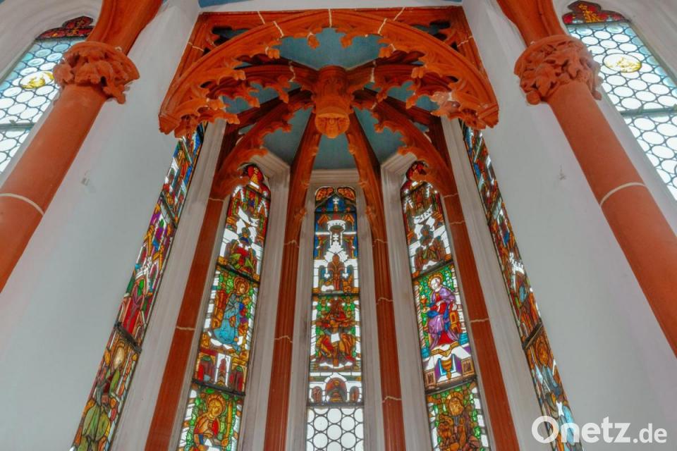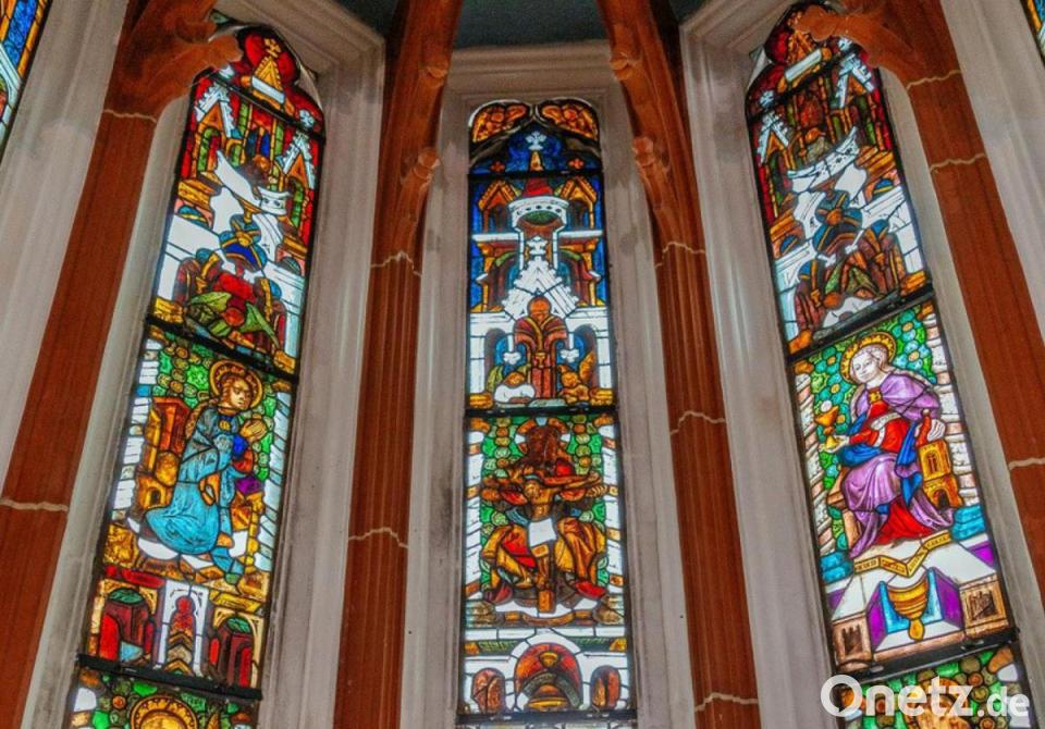 "Die ältesten Bleiglasfenster der Region schimmern in bunten Farben", heißt es in einer Pressemitteilung des Luftmuseums. Zu sehen ist unter anderem ein Bildnis der heiligen Barbara, der Schutzheiligen der Bergleute (im Fenster rechts, mittig mit violettem Umhang und goldener „B“-Schnalle). Diese hat für Amberg wegen des einstigen Eisenerzabbaus Bedeutung. "Die Fenster sind noch original aus der Gotik erhalten", heißt es in der Info aus dem Museum.