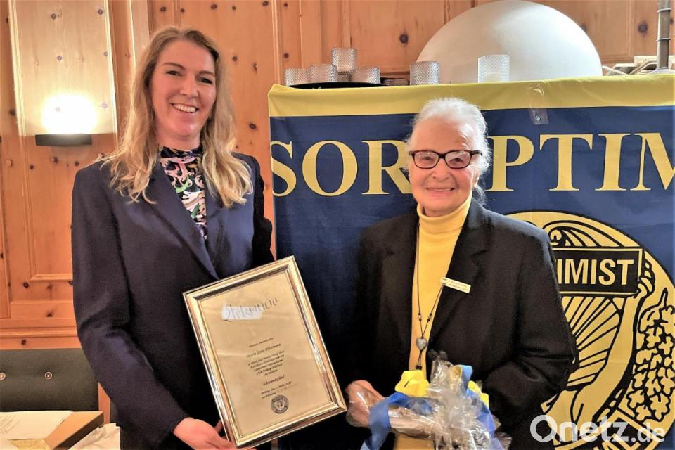 Eine besondere Ehre wurde jetzt auf Antrag des Clubs Amberg-Sulzbach von Soroptimist International einer besonderen Frau zuteil. Maria Geiss-Wittmann, Gründungsmitglied der Soroptimistinnen in Amberg, wurde jetzt als Ehrenmitglied in die Reihen des Serviceclubs aufgenommen. Damit ist Maria Geiss-Wittmann nicht nur die erste Frau aus der Region Amberg-Sulzbach, sondern die allererste in ganz Deutschland, die diese Auszeichnung zuerkannt bekam.