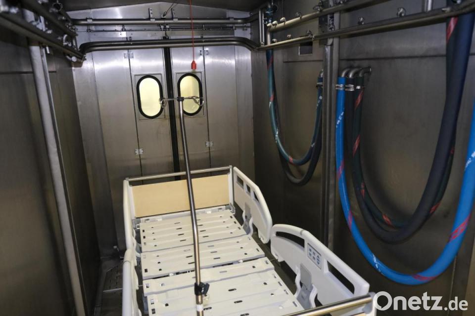 "Besonders wichtig ist unsere Bettenreinigungsanlage für die Aufbereitung von sogenannten ISO-Betten. Dazu zählen zum Beispiel die Betten der Dialysestation, der Kinderintensivstation und natürlich auch die Betten von Patienten mit infektiösen Erkrankungen", erklärt Manuela Reimer, zuständig für den Bereich Hauswirtschaft am Klinikum St. Marien in Amberg. "Gerade jetzt zur Zeit der Corona-Pandemie ist unsere Bettenreinigungsanlage unerlässlich für uns." Wöchentlich werde die Anlage durch einen hauseigenen Techniker gewartet und nach den gesetzlichen Vorgaben überprüft.