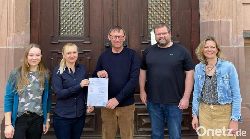Zeitgleich wurde mit Unterstützung des Elternbeirats noch eine Spendenaktion ins Leben gerufen, deren Ergebnis die Schule stolz macht, wie es heißt: Es kam die überwältigende Summe von 5350 Euro zusammen, die jetzt in Lwiw, der Heimatstadt der Familie Singer-Tryhub dazu verwendet wird, geflüchteten Kindern aus der ganzen Ukraine wenigstens ein Stück Normalität und einige unbeschwerte Stunden zu bieten. Unter Federführung der Bibliothek von Lwiw werden die Kinder aus der ganzen Stadt in die Räumlichkeiten der Bibliothek gebracht, wo sie gemeinsam musizieren, malen, Sport treiben oder auch Gartenarbeiten verrichten. Ende vergangener Woche besuchte Singer-Tryhub das Max-Reger-Gymnasium, unterrichtete bei dieser Gelegenheit über den Fortgang des Projekts und überreichte den Vertretern der Schulfamilie ein Dankschreiben der Stadtverwaltung Lwiw.