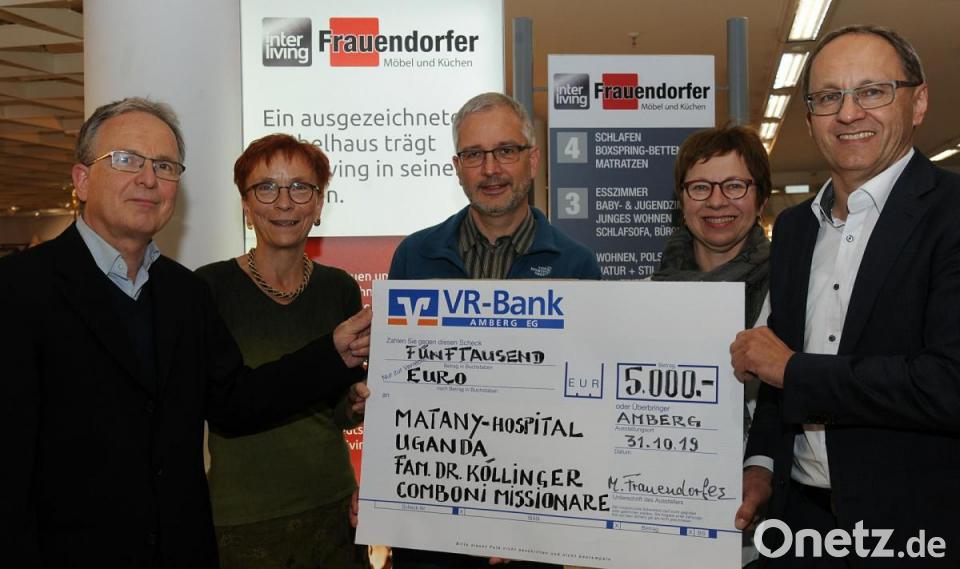Das Möbelhaus Frauendorfer spendet 5000 Euro für das St.-Kitzito-Hospital Mantany in Uganda. Markus Frauendorfer und Andrea Frauendorfer-Bock überreichten jetzt den Spendenscheck an Pater Günter Hofmann und die Eheleute Margareta und Dr. Michael Köllinger, die im vergangen Jahr drei Wochen in Matanay mitgearbeitet haben. Sie wollen damit den Aufbau einer Endoskopie-Abteilung unterstützen.