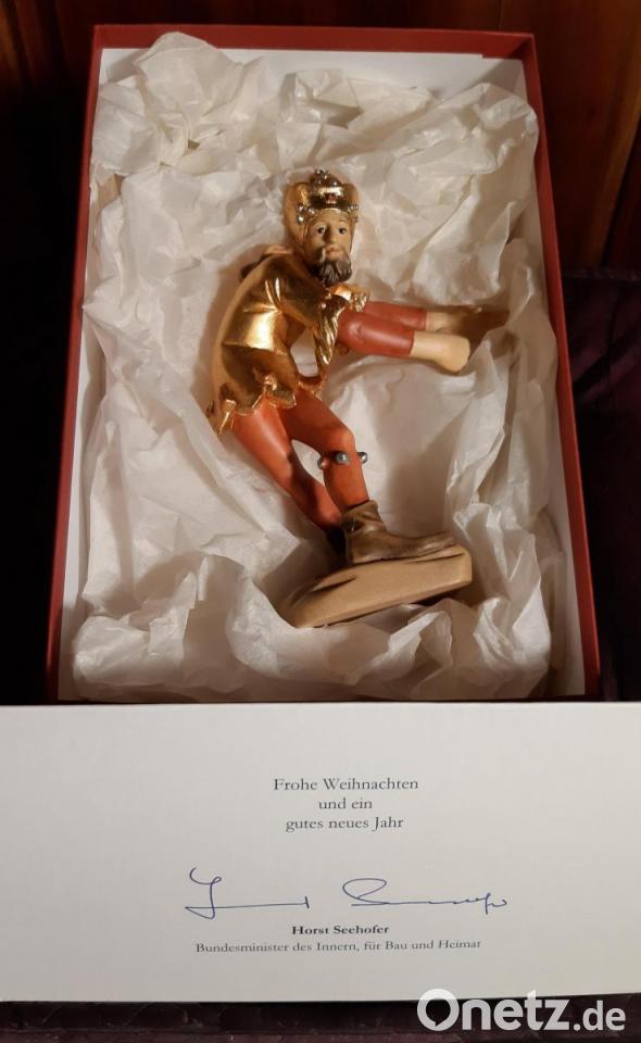 Als sie schon fast nicht mehr an eine Reaktion glaubte, kam dann vor fünf Wochen der Postbote mit einem Päckchen aus Berlin zu den Sanders. Absender: das Innenministerium. Ein Irrläufer oder ein Scherz? Jedenfalls öffneten die Sanders das Paket vorsichtig auf der Terrasse und fanden darin einen "sehr netten Brief von Horst Seehofer", ein Bild mit Autogramm und die Figur eines Moriskentänzers. Für Heidi Sander ist sie ein Beleg, dass der Oberbayer "die kulturellen Zusammenhänge in unserer Region kennt".