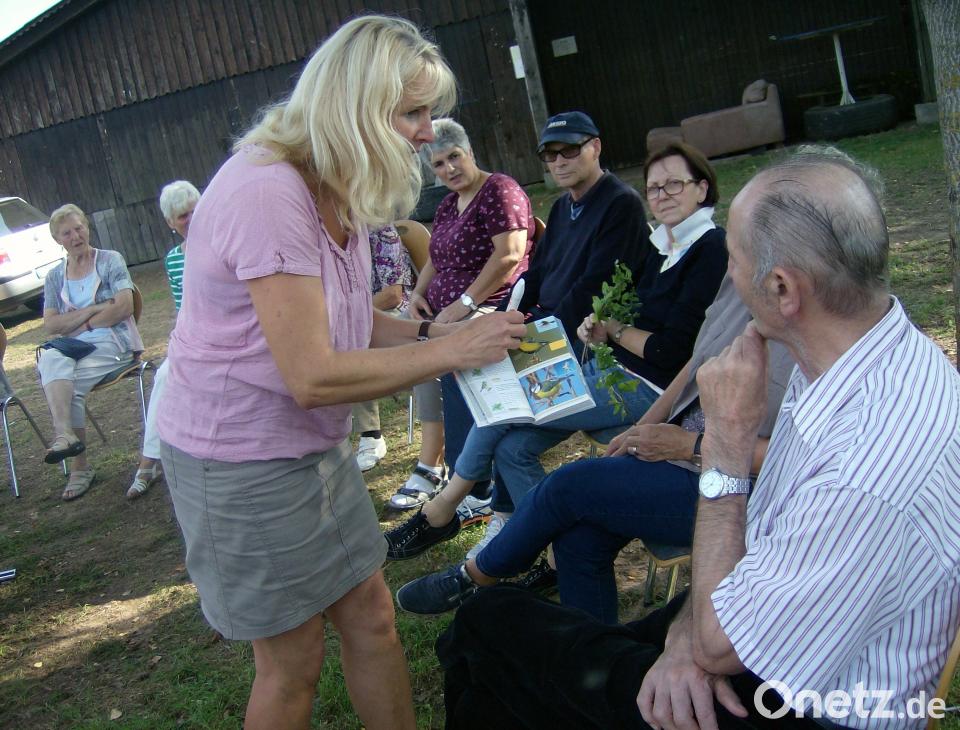 Unter dem Motto "Natur und Zeit sind die beste Medizin" zeigte Gartentherapeutin Irene Kraus aus Edelsfeld, wie die Natur zur Anregung verschiedenster Sinne genutzt werden kann. Dafür hatte sie der Gruppe eine Vielfalt an Blüten, Blättern und Früchten zum Fühlen, Riechen, Tasten, Schmecken und Beobachten mitgebracht.
