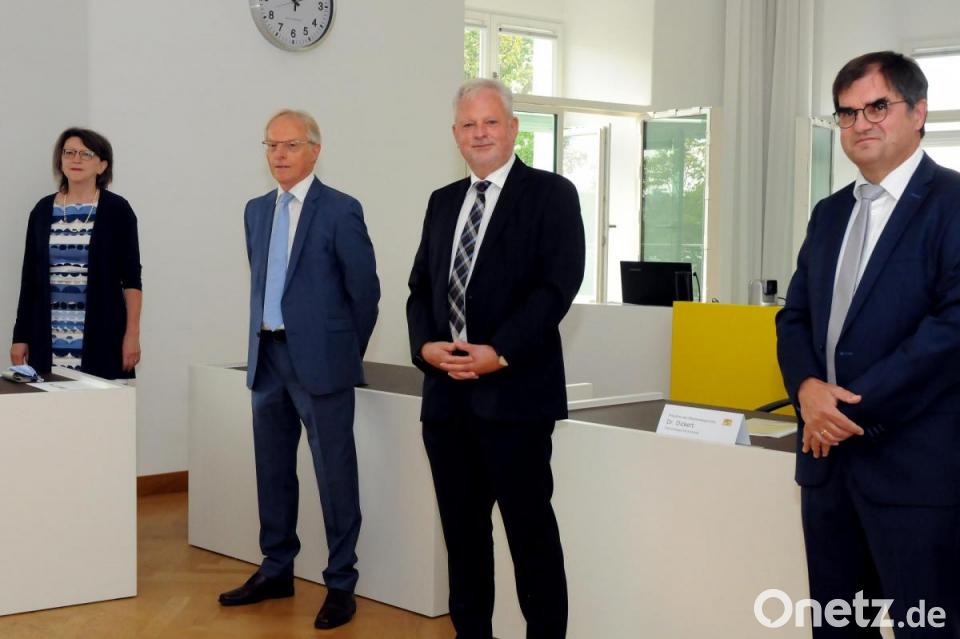 Oberlandesgerichtspräsident Thomas Dickert achtete auf Abstand. Er war aus Nürnberg zusammen mit der OLG-Vizepräsidentin Waltraut Bayerlein angereist, um einen Stabwechsel im Amtsgericht zu vollziehen. Dies geschah, weil Corona es so gebot, in einem schmucklosen Sitzungssaal. Die weltweit für Vorkehrungen sorgende Seuche ließ es noch nicht einmal zu, dass die Familien der beiden Hauptpersonen eingeladen werden konnten. OLG-Präsident Dickert wandte sich zunächst dem schon vor einigen Monaten in den Ruhestand getretenen Ludwig Stich zu. "Sie haben das Amtsgericht geprägt", lobte er und nannte Stich "einen seriösen Richtertyp". Danach erinnerte Thomas Dickert daran, dass Stich 37 Jahre lang im Dienst der bayerischen Justiz stand und machte dessen Kompetenz an einem Urteil fest, das Ludwig Stich schrieb, als er noch einer Strafkammer des Landgerichts angehörte. Der Schriftsatz umfasste 243 Seiten.