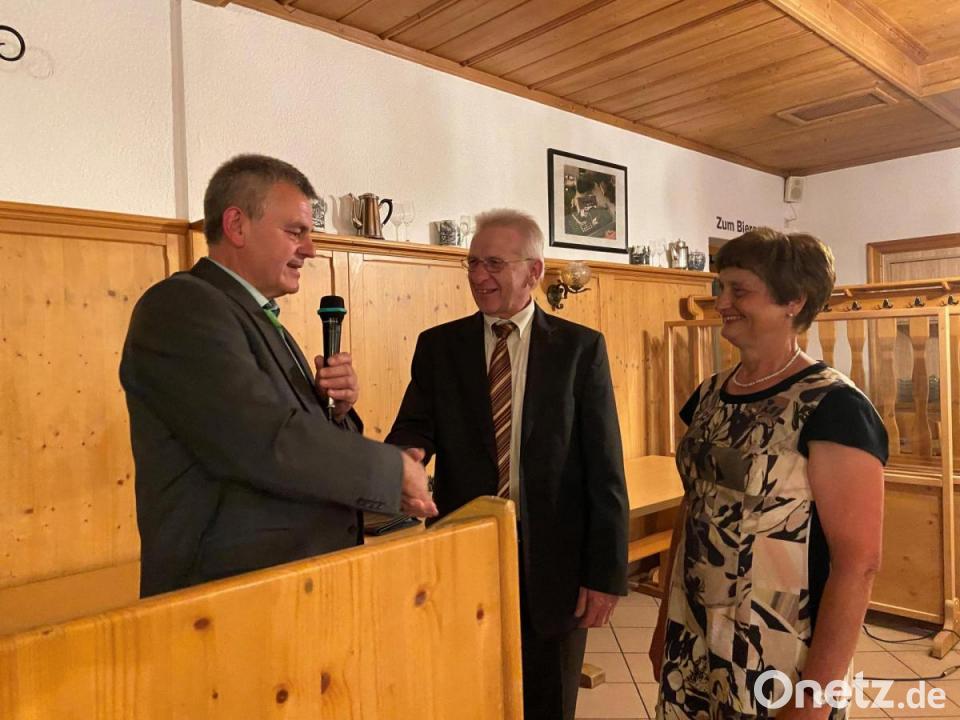 Ein weiterer Punkt der Tagesordnung war die Verabschiedung von Laurenz Beck. 35 Jahre war Beck Teil der Vorstandschaft und 25 Jahre stellvertretender Leiter des Maschinenrings. Dieses Engagement würdigte Ulrich Kummer in seiner Dankesrede. Beck wurde mit sofortiger Wirkung zum Ehrenmitglied ernannt und erhielt außerdem ein Präsent, seine Frau Rita Beck einen Blumenstrauß.