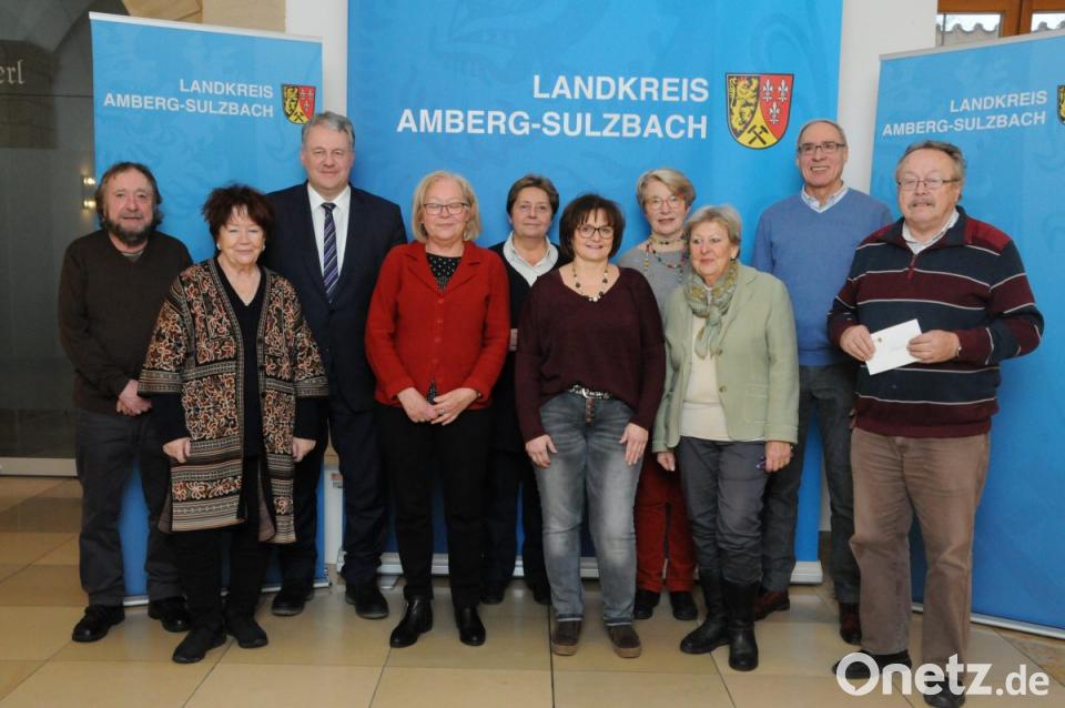 Überraschung für die Vertreter des Klosters Ensdorf, des franziskanischen Hilfswerks LAFIA, der Kolpingsfamilie, des Sozialdienst katholischer Frauen, der Projekthilfe Dr. Luppa, der Blindenhilfe und von Socialis for the Gambia: Im Landratsamt übergaben ihnen Landrat Richard Reisinger, Wolfgang und Heidemarie Sander Schecks über jeweils 100 Euro. Das Geld stammt aus der Klösterlichen Weihnacht. Reisinger dankte dem Ehepaar Sander, dem Motor dieses besonderen Weihnachtsmarkts.