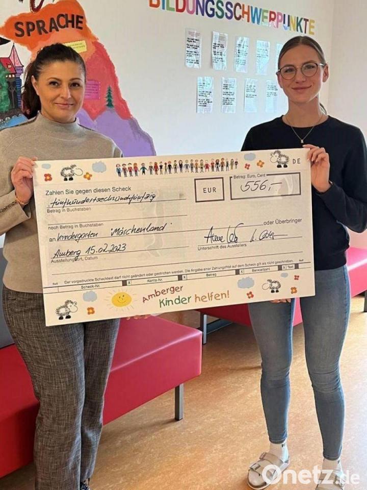 In ihrem Second-Hand Laden „Basar“ sammelt die Organisation „Amberger Kinder helfen“ ihre Einnahmen, um regelmäßig Menschen aus der Region zu unterstützen. Jedes Wochenende erhält eine andere regionale Kindertagesstätte, welche durch das Ziehen eines Loses entschieden wird, eine großzügige Spende, heißt es von dem Verein in einer Presse-Info. Von dem gesammelten Geld erhielt der Johanniter-Kindergarten „Märchenland“ in der Kennedystraße einen Spendenscheck in Höhe von 556 Euro. Sichtlich erfreut zeigten sich Einrichtungsleitung Valeria Pundor und Mitarbeiterin Katharina Ostermann bei der Übergabe des Spendenschecks im Johanniter-Kindergarten „Märchenland“.