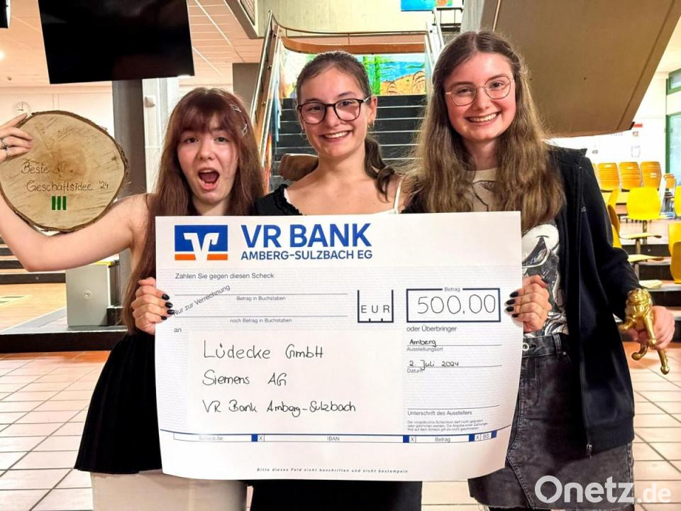 Sehr erfreut waren die drei Schüler vom Team „Switcher“ über den zweiten Platz und 250 Euro. Hier lobte die Jury vor allem das Engagement und den gewandten Vortrag der Produktqualitäten. Mit Platz 1 und einem Preisgeld von 500 Euro bedacht wurden die drei Schülerinnen mit dem Sicherheitsschmuck für Frauen. Die Jury hob bei diesem Pitch besonders den gelungenen Einstieg hervor: Annika Gruber, Lena Leitermann und Lisa Pekin hatten zunächst das Bild eines Bären auf der Leinwand gezeigt und dann ein Video abgespielt, in dem es um die „Mann gegen Bär“-Debatte ging; dabei handelt es sich um ein Thema, das auf YouTube und TikTok seit Mai 2024 eine enorme Verbreitung gefunden hat: Frauen werden befragt, ob sie lieber einem Mann oder einem Bären allein im Wald begegnen würden – und die meisten Frauen wählen den Bären (der Bär sei berechenbarer als ein fremder Mann; der Bär sehe die Frau als menschliches Wesen; und weitere Gründe). Daraus folgerten die Schülerinnen, dass das Gefühl der Bedrohung, das viele Frauen empfinden, sehr häufig vorkommen muss, was darauf schließen lässt, dass ihr Produkt gute Chancen haben müsste.