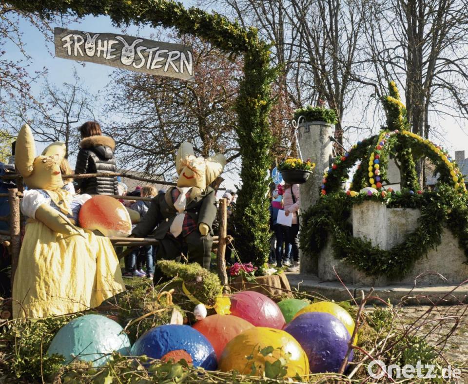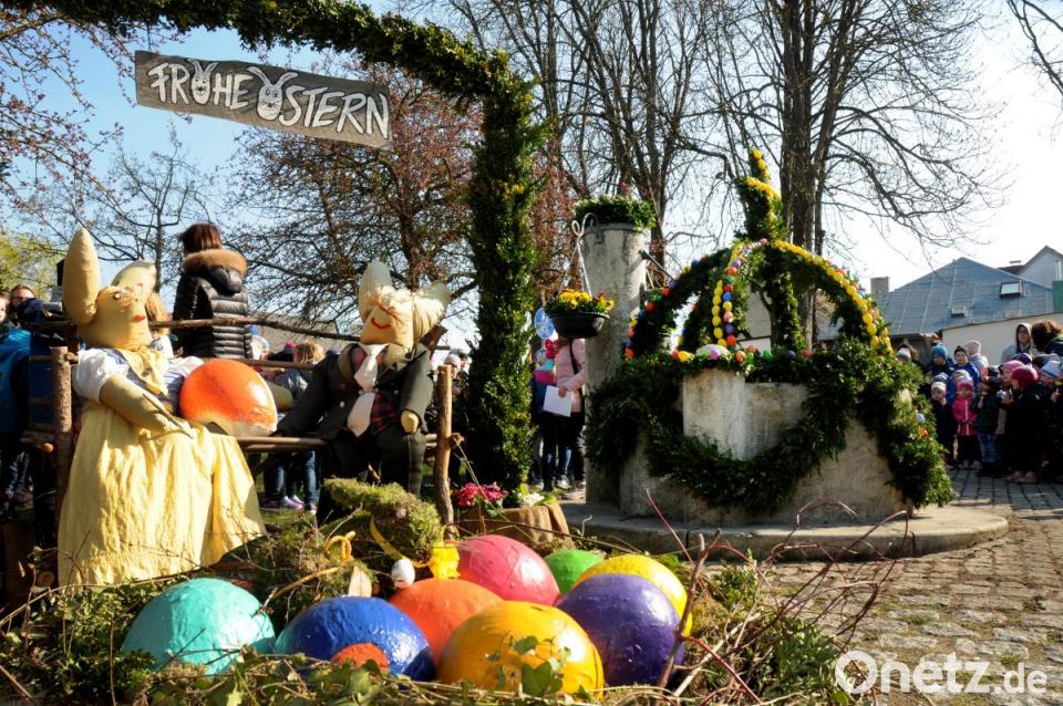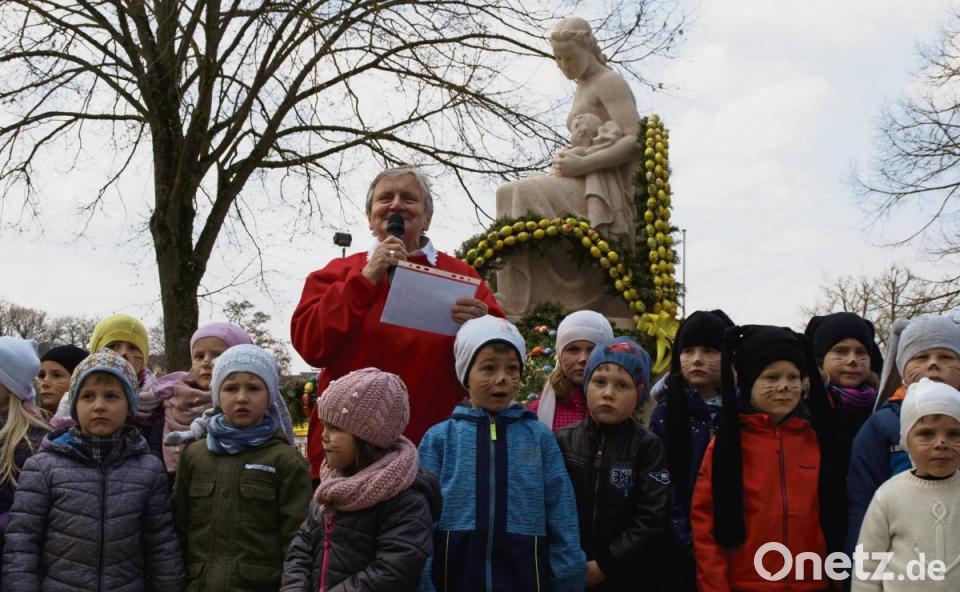 Eine richtiges Fest für Jung und Alt ist jedes Jahr die Einweihung des Osterschmucks am Mutter-Kind-Brunnen in Sulzbach-Rosenberg.