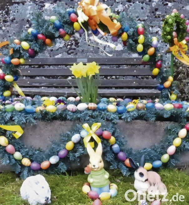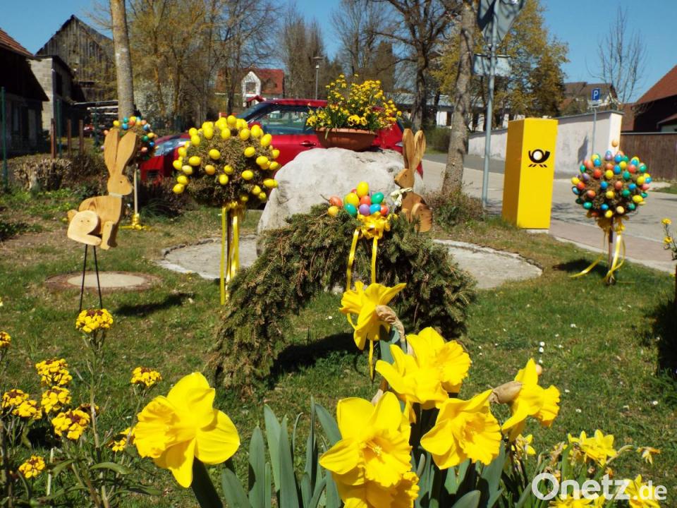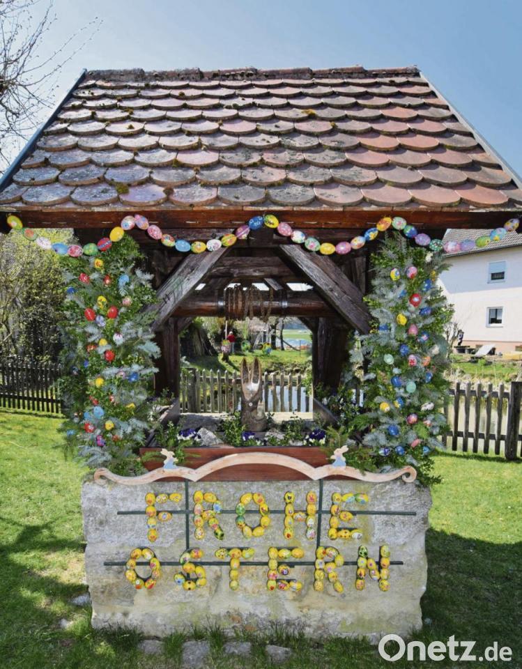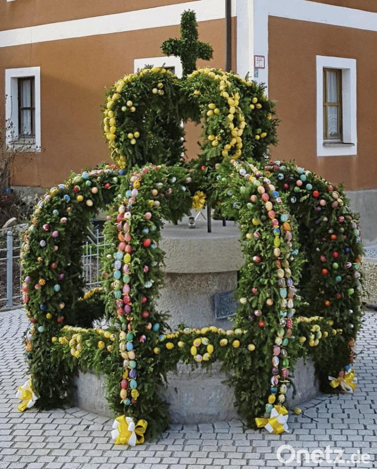 Der Obst- und Gartenbauverein Augsberg hat den Brunnen beim Dorfweiher in Pesensricht in einen Ostergruß verwandelt.