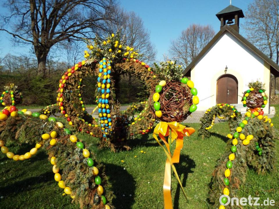 Der Obst- und Gartenbauverein Raigering-Aschach ist eine von vielen Gruppen, die im Landkreis Amberg-Sulzbach einen Osterbrunnen schmückt.