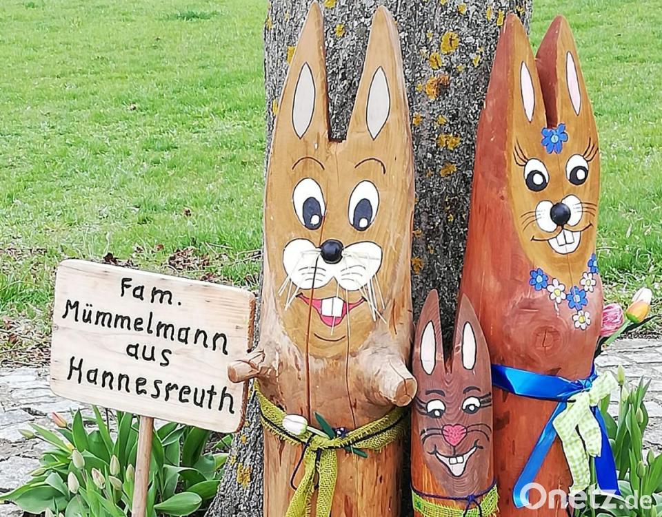 Der einzige Osterbrunnen der Marktgemeinde Königstein steht in Hannesreuth. Bewacht wird er von der Familie Mümmelmann.