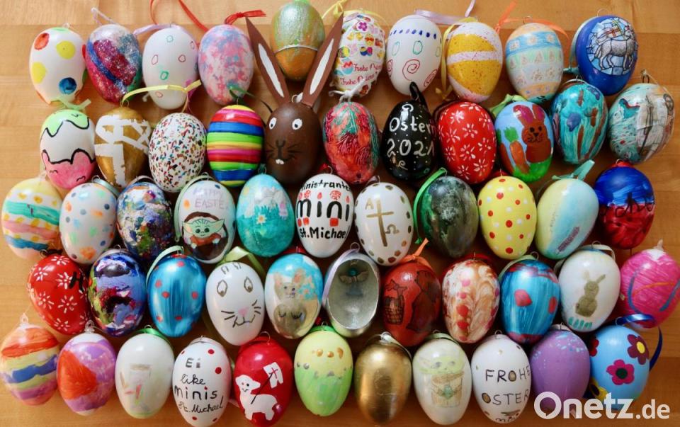 So kam die Ostereiermalaktion bestes bei allen Beteiligten an. Die zündende Idee dazu hatte Thomas Held, Mitglied des Jugendausschusses der Pfarrei. Nicht nur die gesamte Ministrantenschar hat sich daran beteiligt, sondern auch Geschwisterkinder. Beim Bemalen gab es keine Grenzen. Hinter jedem Ei steckt eine eigene Idee. „Was herausgekommen ist, kann sich sehen lassen, denn manche Ostereier gleichen kleinen Kunstwerken“, freut sich Held über das Ergebnis. Es wurde sogleich an einen Osterstrauß beim Altar gehängt. Die kleinen Kunstwerke der Minis sorgen dafür, dass der Osterstrauch zum Hingucker in der St. Michaels-Kirche wird.