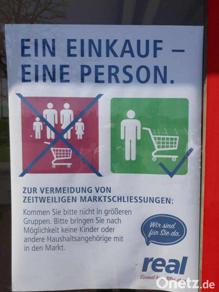 Auch im Real-Markt in der Fuggerstraße gibt es vor Betreten des Ladens gut sichtbare Sicherheitshinweise für die Kunden. Außerdem bittet Kaufland genau wie der Real-Markt seine Kunden darum, den Einkauf mit so wenigen Personen wie möglich, am besten allein, zu erledigen. "Übernehmen Sie die Einkäufe für ältere oder kranke Personen, die besonders gefährdet sind", ist auf einem Schild an der Eingangstür zu lesen. Ein Plakat im Eingangsbereich des Real weist Kunden außerdem daraufhin, möglichst wenige Produkte zu berühren und am besten immer kontaktlos mit Karte zu bezahlen. Nur so könne die Ansteckungsgefahr mit dem Coronavirus für Kunden und Mitarbeiter reduziert werden.