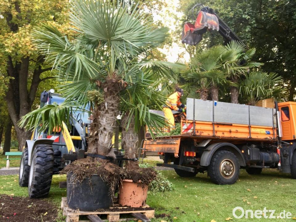 Die Mitarbeiter des städtischen Betriebshofs haben am Dienstag die Palmen ausgegraben und ins Winterquartier gebracht. Dort werden sie die nächsten Monate über gepflegt und gehegt, damit sie Amberg auch im nächsten Jahr wieder mediterranes Flair verleihen können. Heuer ist das ja - Dank des ausnehmend sonnigen Wetters - ganz gut gelungen.