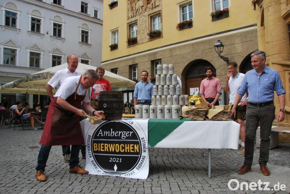 Die Braumeister der sechs Amberger Brauereien waren beim Startschuss zu den Bierwochen schon etwas stolz, dass es ihnen gelingt, gemeinsam die Marke "Bierstadt Amberg" auch in Corona-Zeiten am Leben zu erhalten. "Ohne das Miteinander der Amberger Brauereien gäbe es kein Bierfest, vielleicht gar kein Bergfest", mutmaßte auch OB Cerny.