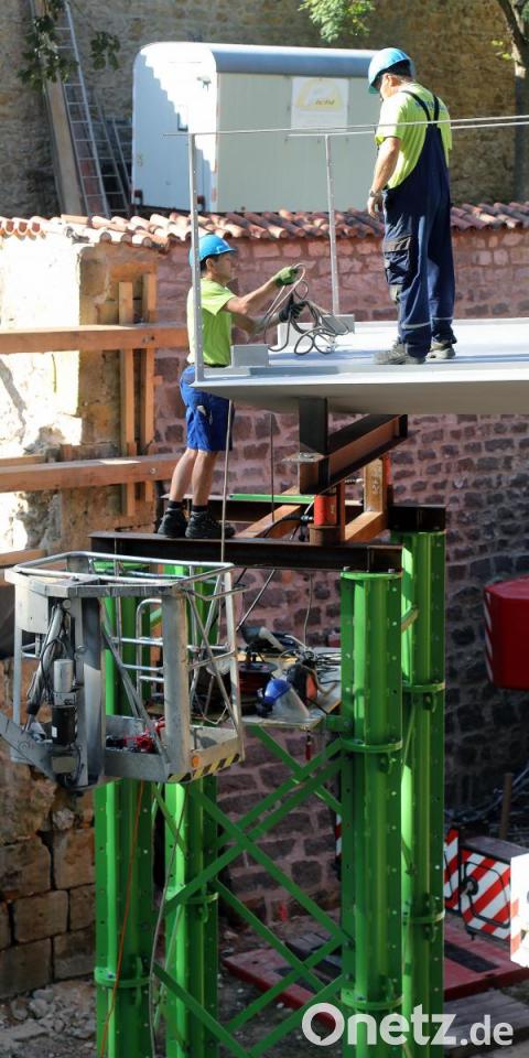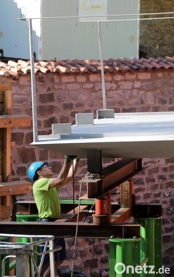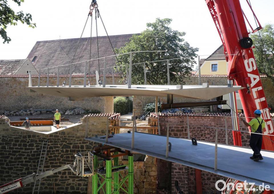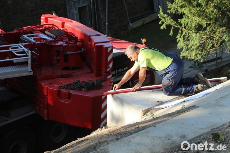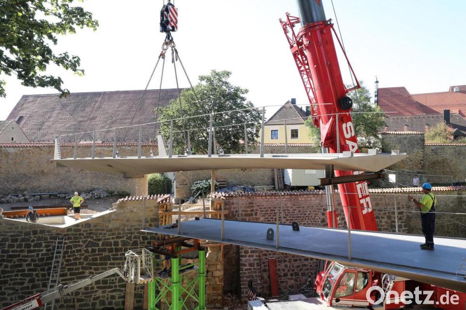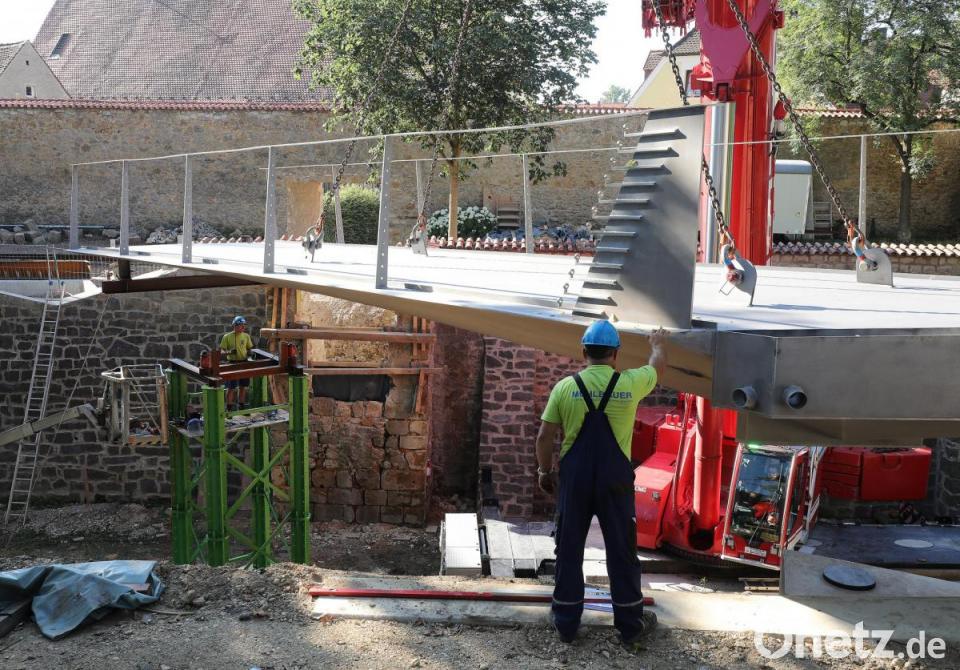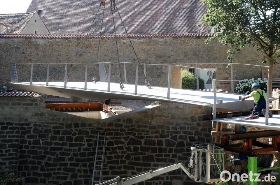 Seit drei Jahren warten die Amberger auf ihren neuen Pioniersteg. Jetzt schwebte er elegant über dem Stadtgraben ein.