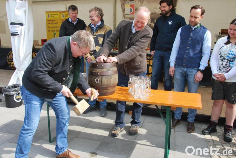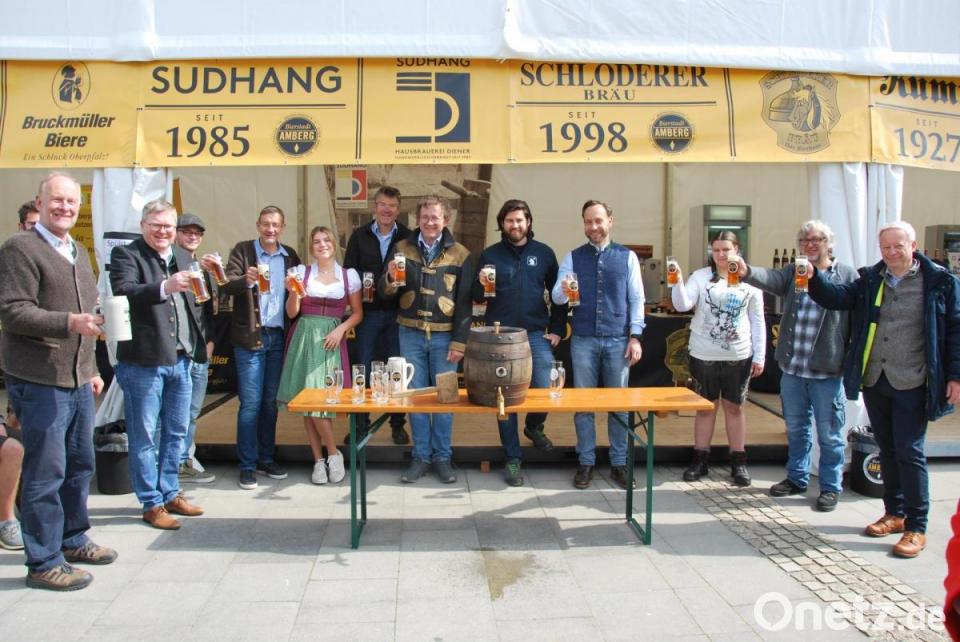 Den Anfang des Mega-Wochenendes in Amberg mit zahlreichen Veranstaltungen machte das Bierfest. Ab 11 Uhr am Samstag, dem Tag des Bieres, floss der Gerstensaft der sechs Amberger Brauereien. Oberbürgermeister Michael Cerny hatte, musikalisch begleitet von den D´Übler Buam aus Wolfsbach, ganz routiniert keinen Tropfen des edlen Getränks verschwendet und mit drei Schlägen das erste Fass angezapft.