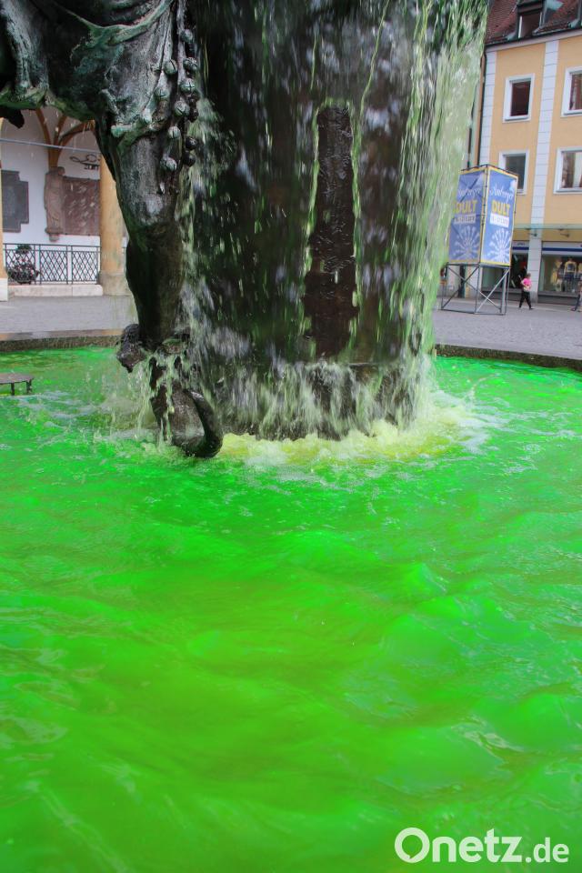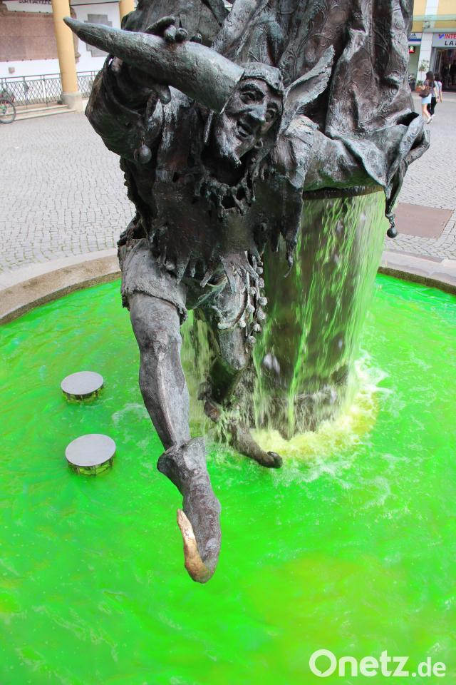 Oberbürgermeister Michael Cerny erreichten die Bilder vom giftgrünen Marktplatz-Brunnen im Urlaub. Auch er rätselte über die Urheber des Schabernacks, so wie viele Amberger, die am Wochenende durch die Innenstadt schlenderten. Auf Facebook waren die Bilder von der ungewöhnlichen Wasserfärbung der Hit. "Finde es toll", schrieb eine Kommentatorin. "Schaut super aus und lockert alles etwas auf. Es passt auch zum Wetter macht gute Laune!"