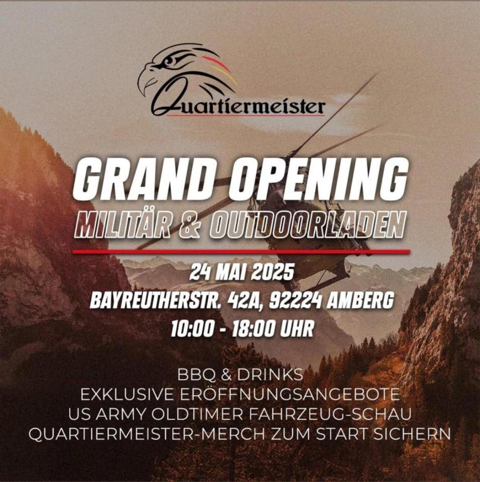 Besuchen Sie uns ab dem 24. Mai in der Bayreuther Straße 42a und entdecken Sie das umfangreiche Sortiment von ‚Der Quartiermeister‘ – Ihr Partner für alles rund um Einsatz, Outdoor und Abenteuer!“