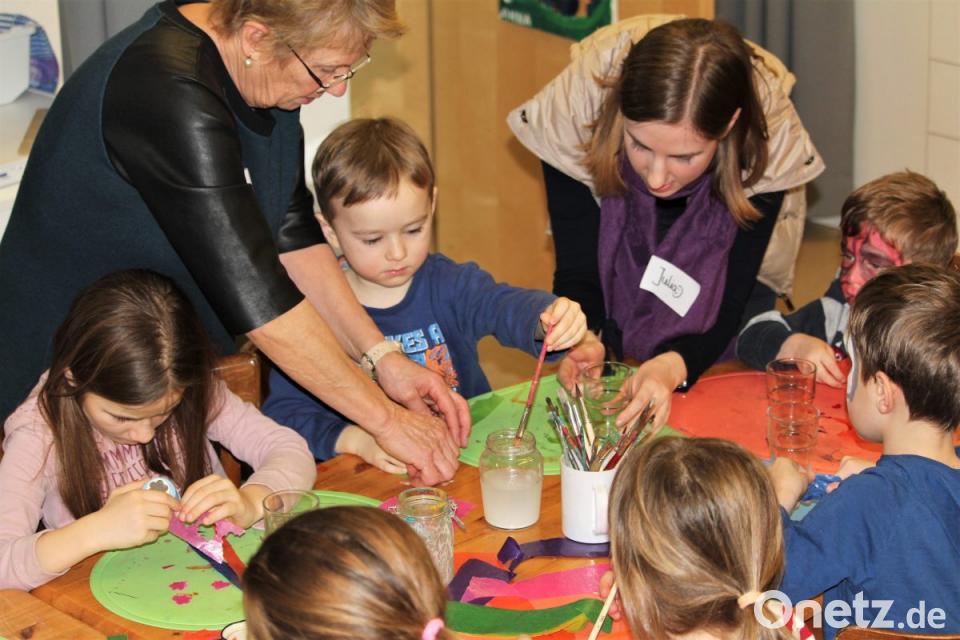 Schwerpunkt der Führung an diesem Erlebnistag ist Glas. Es geht um Rohstoffe, Produktion, Verarbeitung und um den Einfluss auf die Kunst. Der Name Ottmar Alt war den jungen Museumsbesuchern zunächst kein Begriff, jedoch erkannten sie seine Werke sofort. „So was steht auch am Bahnhof!“ Klar! Miro und Poldi! Was für manchen Kunstbanausen befremdlich aussieht, gefällt den kleinen kreativen Köpfen sehr. Bunt und lustige Formen – obwohl ein stilbewusstes Mädchen dann doch zugibt, dass diese Glaskunst wohl kaum in ihr Zimmer passen würde. In der Werkstatt dürfen die Teilnehmer dann auch ihre eigenen Gläser gestalten – mit Farbe, Pinsel, Papier und Kleister. Wer aber die Lücke der Führung nutzen will, kann sich im freien Kreativbereich anderweitig mit Glas beschäftigen. Wissensquiz, Malen, Memory und auch ein Museumsbrettspiel liegen bereit.