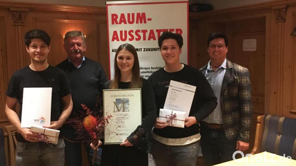 Die Raumausstatter-Innung Mittlere und Nördliche Oberpfalz hat sich bei ihrer Innungsversammlung über die Erfolge ihres Nachwuchses gefreut. Obermeister Reiner Weiß aus Schwend gratulierte zwei Junghandwerker, die ihre Gesellenprüfung abgelegt haben: Tizian Weiß (Raumausstattung Weiß Schwend) und Ahmad Hussaini (Raumausstattung Paulus Amberg). Ebenso gratulierte der Obermeister Raumausstatterin Jennifer Weiß zu ihrer mit sehr gutem Erfolg bestandenen Meisterprüfung. Jennifer Weiß wird weiterhin im elterlichen Geschäft mitarbeiten. Allen Prüflingen überreichte der Obermeister ein kleines Präsent.