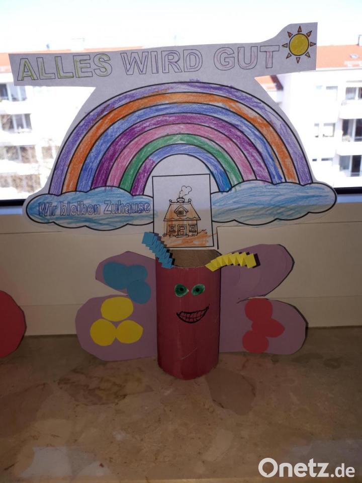Ob mit Fingerfarbe oder Papier: immer mehr kleine Künstler malen und basteln in diesen Tagen Regenbögen und schmücken damit die Fenster ihrer Wohnungen. Auch Jessica Schaaf aus Amberg ist im Internet auf die Aktion aufmerksam geworden und hat mit ihrem Sohn mitgemacht.