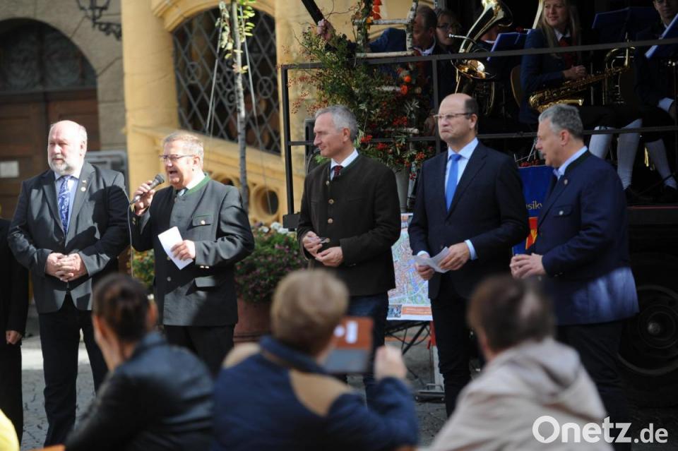 Die Eröffnung des Genuss- und Heimat-Marktes und der Luftklangmeile nahmen Bayerns Finanz- und Heimatminister Albert Füracker, Landrat Richard Reisinger, Bürgermeister Martin Preuß sowie Werner Stein als Kreisvorsitzender des Nordbayerischen Musikbundes vor. Zuvor wurde in St. Martin der BBV-Erntedankgottesdienst gefeiert, den der Ortsbäuerinnenchor musikalisch gestaltete. „Der Regionalmarkt Genuss und Heimat ist ein Aushängeschild für die ganze Region. Er macht unsere Oberpfälzer Heimat auf besondere Weise erlebbar“, freute sich Füracker. Der Dank des Ministers galt allen Organisatoren und Beschäftigten „für ihren unermüdlichen Einsatz und ihr vorbildliches Engagement.“