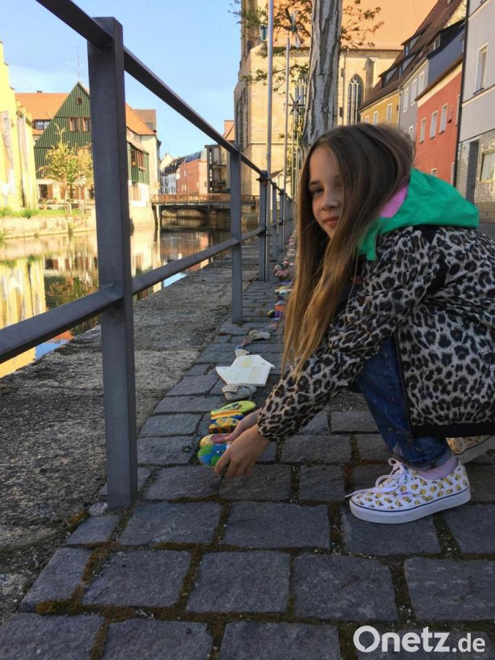 Initiatorin Sabine Rummel kennt das: "Auch wir mussten das leider schon feststellen. Mein Sohn war total traurig, dass einer seiner Steine weg ist. Ich finde es schade, dass die Leute einfach Steine wegnehmen, oder in die Vils werfen." Vor allem die Kinder, aber auch viele Erwachsene würden sich viel Mühe mit ihren Kunstwerken geben. Zwar gebe es in der Schiffgasse ein Plakat und auch in der Facebook-Gruppe sei darum gebeten worden, keine Steine mitzunehmen oder in die Vils zu werfen, "aber Unverbesserliche gibt es leider überall". Sabine Rummel versucht es trotzdem mit einem Appell: "Ich möchte an die Vernunft der Menschen appellieren, die Steine doch bitte für alle liegen zu lassen. So kann sich jeder daran erfreuen." Für Bianca Spies und ihre Tochter ist das kaum ein Trost. Zumindest gibt es ein Erinnerungsfoto.