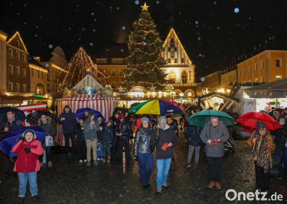 Der Sturm hat sie nicht abhalten können. Auch nicht das sich in der Stadt anbahnende Hochwasser. Am Samstag, 23. Dezember, also einen Tag vor Heiligabend haben sich die Menschen am Marktplatz versammelt, um sich beim traditionellen "Amberg singt in den Advent" mit den Amberger Rathhausbläsern besinnlich zu fühlen. Der stürmische Massenchor startete um 17.30 Uhr. Wer wollte, bekam auch einen Liederzettel, wobei fraglich ist, ob der bei dem Wetter recht lange im Ganzen blieb.