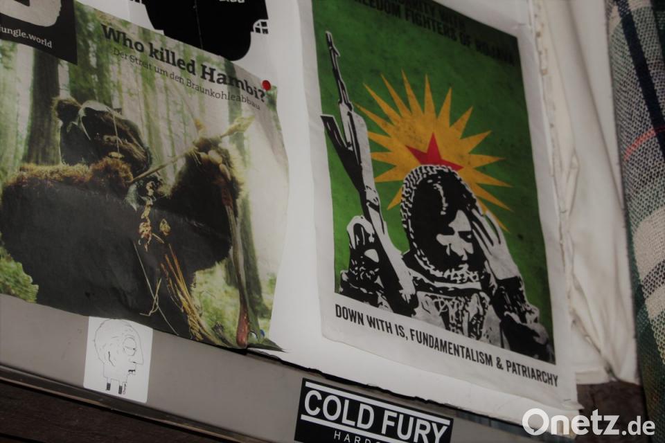 Das Feuer im Kamin lodert. Auf der großen Leinwand flimmert ein selbst gedrehtes Video über unterirdische Gänge Ambergs, die irgendwann irgendwo von der Truppe entdeckt wurden. Auf etwa 70 Quadratmetern erstreckt sich ein offener Raum, jeder Winkel genutzt mit Sitzgelegenheiten, Instrumenten, Konzert-Plakaten und klaren politischen Aussagen.
