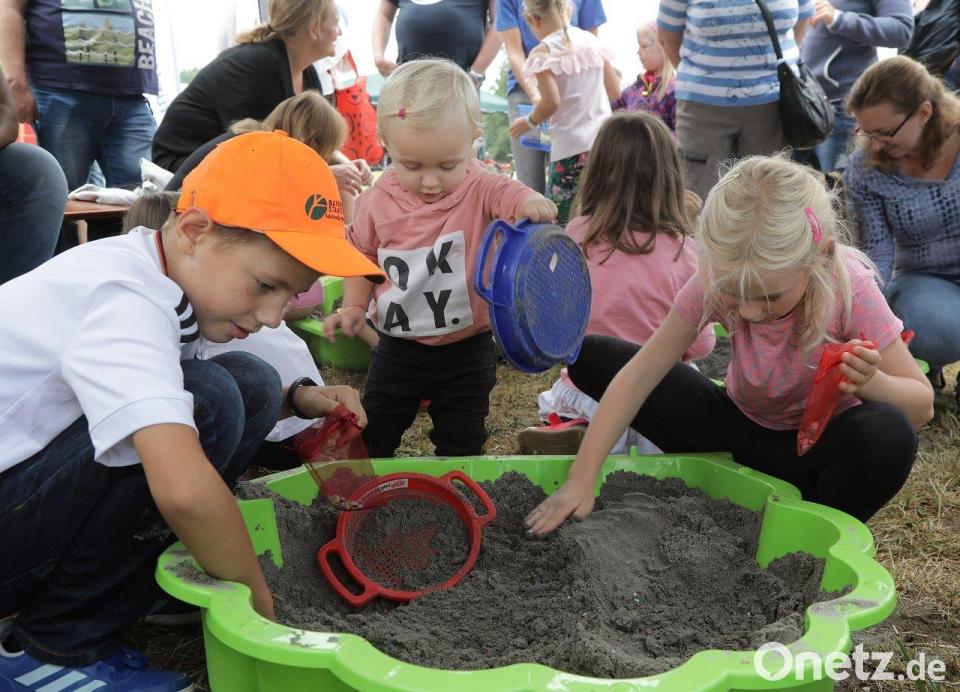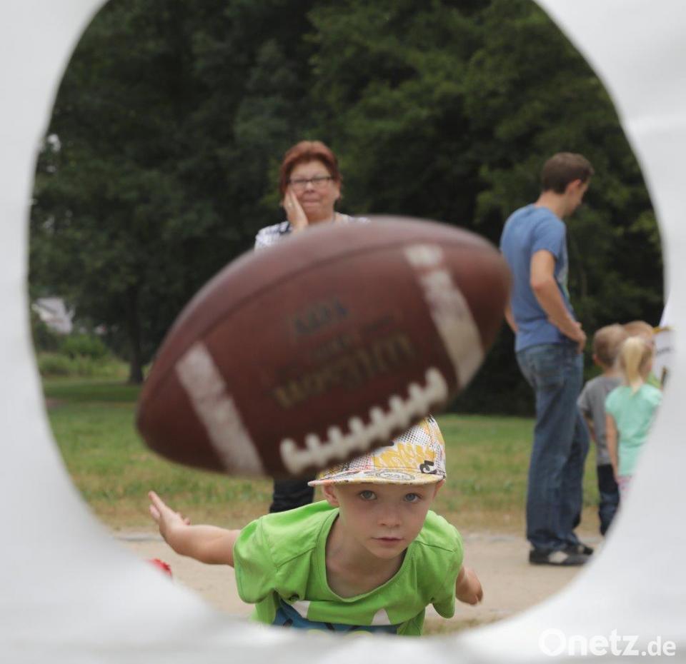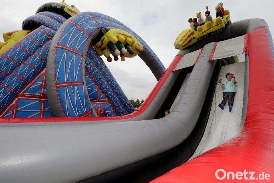 (tk) Vom eher schlechten Wetter ließen sich die Meyers nicht abhalten. "Von ein paar Tropfen lassen wir uns nicht abschrecken", sagte der Großvater, der mit Frau und Enkeln schon um 11 Uhr vor Ort war. Und siehe da, wie auf Kommando hörte der Regen auf. Sehr zur Freude von Christina Fischer von der Kommunalen Jugendarbeit, bei der alle organisatorischen Fäden zusammenlaufen: "Wir haben heute Morgen schon viel geschwitzt, aber nicht wegen der Temperaturen."