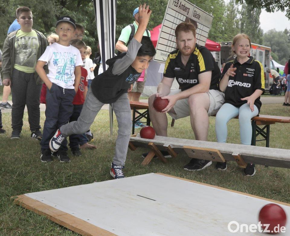 Und Marc Meyer? Der probierte einfach alles aus, was ihm Spaß machte. Hockeyspielen, Angeln, Werfen und den Kinderpolizei-Ausweis, den auch sein jüngerer Bruder bekam. Und dann war da noch die Maschine, mit der man die Schussgeschwindigkeit messen kann. Marc, der nach den Sommerferien für die D-Jugend des FC Amberg spielt, brachte es auf erstaunliche 83 Kilometer pro Stunde. So ganz ohne Fußball geht es bei ihm halt doch nicht.