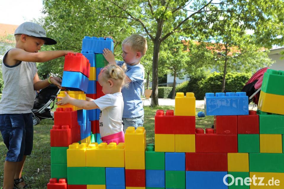 Stolz zeigte die kleine Lea ihre beiden Glitzertattoos: ein Schmetterling auf dem linken Unterarm, ein Herz auf dem rechten. Die Zweijährige war mit ihrer Mutter zum ersten Mal beim Spielenachmittag. "Ich find's toll hier, wirklich schön", sagte die Mama. Und Lea schnappte sich einen der Legosteine im XXL-Format und baute fleißig mit anderen Kindern am Häuschen mit. Und weil Spielen hungrig macht, bot der Bürgertreff kostenlos frisch gebackene Waffeln an.