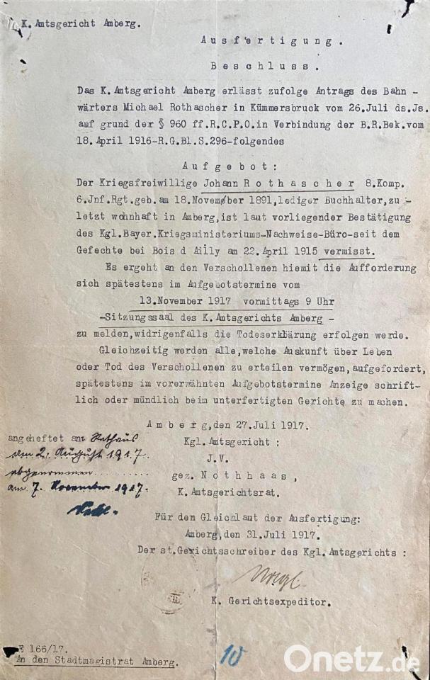 Das Staatsarchiv Amberg verwahrt etwa 11.000 solcher Dokumente, die das Schicksal bayerischer Soldaten und Zivilisten von Napoleons Feldzug 1812 bis zum Zweiten Weltkrieg belegen. Diese Quellen sind für die Heimat- und Familienforschung von großer Bedeutung, da sie Einblicke in die rechtlichen und historischen Entwicklungen der Todeserklärungen im 19. und 20. Jahrhundert geben.