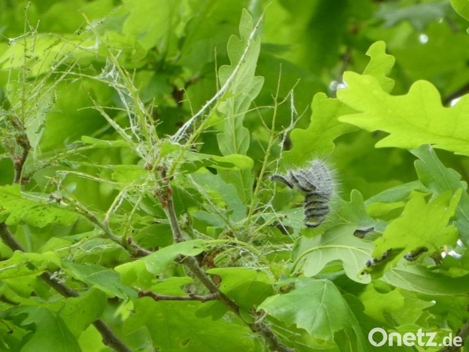 Ambergs Pressesprecherin Susanne Schwab teilt dazu mit: "Deutlich erkennbar ist der Befall anhand von Fraßspuren an den frischen Blättern der Eichen, an den Ansammlungen der behaarten Raupen und an den Häutungsresten auf der Baumrinde."