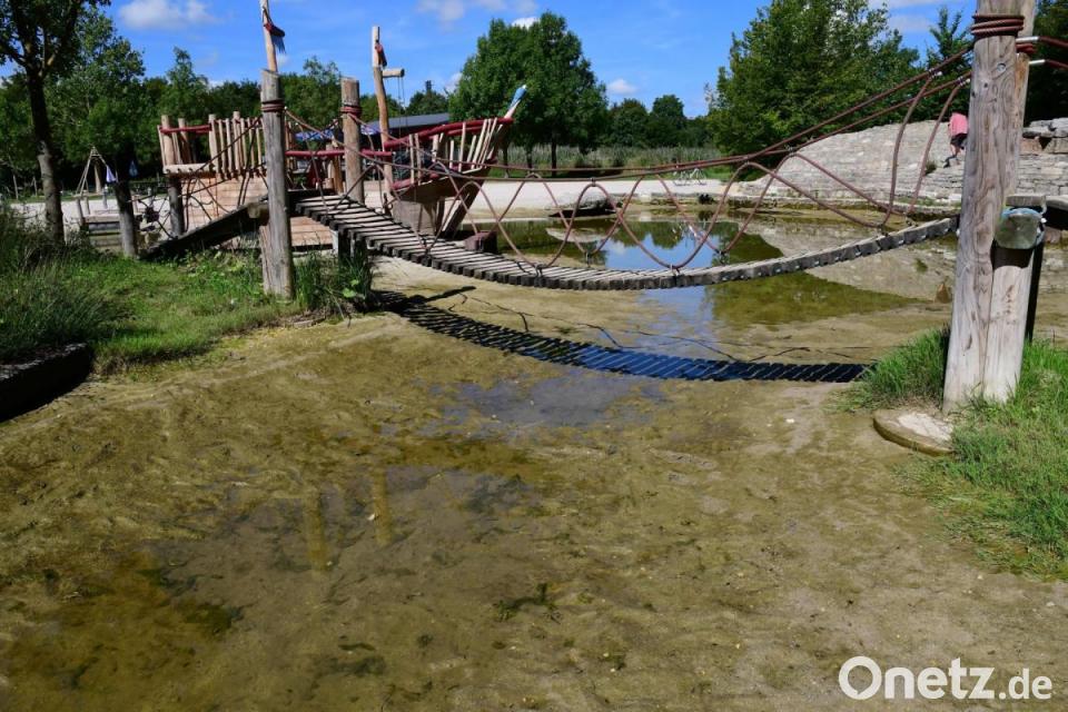 Die hölzernen Standpfosten der alten Hängebrücke hielten im Flachwasserbereich nicht so lange wie erwartet. Daher ersetzt die Stadt die Brücke nun durch eine Konstruktion mit Standpfosten aus Stahlrohren in einem neuen Design. Auch lohnt es sich laut Pressemitteilung wegen der starken Mängel nicht, den Kletterturm auf der Insel zu reparieren. Als Ersatz schafft die Stadt einen neuen „Piratenturm“ an, der optisch und thematisch zu dem Piratenschiff passt.