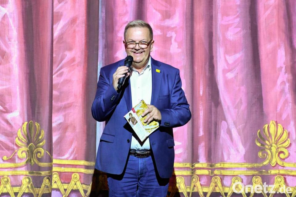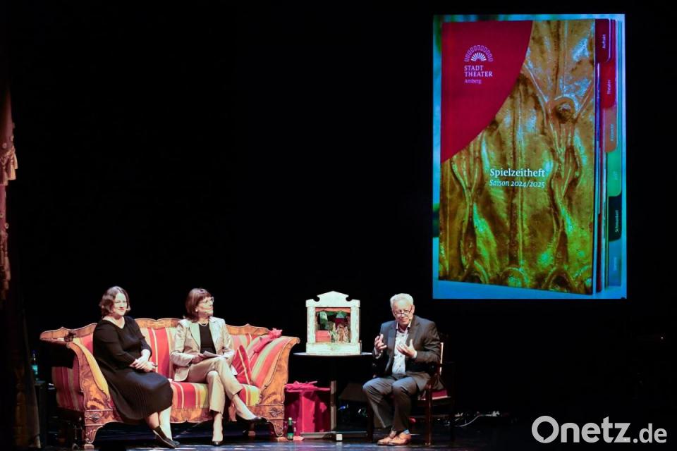 Das Hauptaugenmerk lag jedoch auf den Inhalten des Programmbuchs. "Vilsgold" nannte es Kulturreferent Kern in Anspielung auf das auf dem Umschlag abgebildete vergoldete Dekorationselement aus dem Theaterraum. Barbara Hauck und Ingeborg Waldherr spielten sich in kurzen, immer wieder auch szenisch gestalteten Gesprächen die Bälle zu beim Gang durch die Vielfalt des Angebots, und zur Verdeutlichung wurden auf der großen Leinwand im Hintergrund Aufführungstermine und Bilder eingeblendet, zum Teil auch Musik eingespielt oder Trailer gezeigt. Für die Zuschauer im gut gefüllten Parkett des Stadttheaters war das sehr übersichtlich, gut verständlich und niemals langweilig.