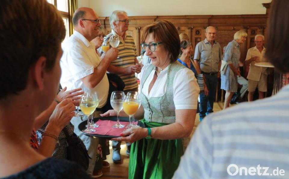Nach den warmen Empfangsworten und noch vor dem Eintrag ins Gästebuch der Stadt gab es eine Kurzführung durch das Rathaus. Dabei erfuhren die Gäste aus Frankreich unter anderem, warum im Großen Rathaussaal der Stadt die Portraits bayerischer Könige zu sehen sind. Michael Cerny verglich das mit dem "Brauch", ein Bild des jeweiligen Staatsoberhaupts in offizielle Büros zu hängen. Die großformatigen Bilder seien damals gemalt worden – bezahlen musste sie natürlich die Stadt Amberg.