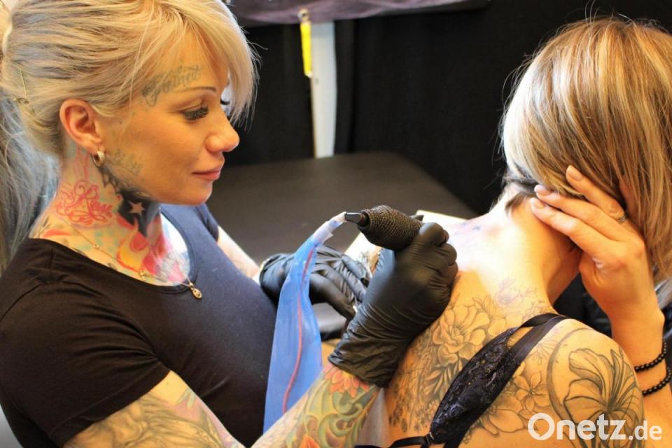 Dass die Preise auf einer Tattoo-Convention ansteigen, müsste jedem Besucher bewusst sein. Für einen fünf Zentimeter kleinen Rosenstil hinter dem Ohr muss eine Ungeduldige etwa 150 Euro berappen. Zehn Minuten dauert diese Sitzung. Etwas zerknirscht gibt die Amerikanerin zu, dass sie sich Termine schlecht merken kann und auch keine Lust hat, sechs Monate zu warten. Deswegen besucht sie regelmäßig Tattoo-Messen in der Region, um ihre Lieblingsblume auf ihrer Haut verewigen zu lassen. Kleine Schriftzüge über dem Ellbogen, Erweiterung einer 15 Jahre alten Tätowierung oder die vertikale Aneinanderreihung von Zahlen auf der Wade - das sind Wunschmotive, die auch am Sonntag im ACC noch fertiggestellt werden sollen.