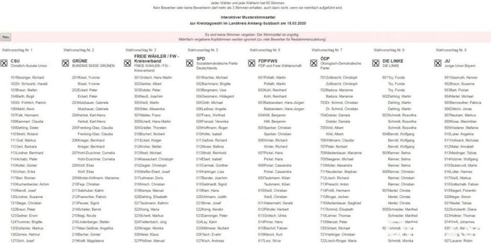 „Wir sehen das als Service für die Wähler“, erklärt Kreiswahlleiter Hans Siegert zum Wahl-Simulator für die Bürger des Landkreises Amberg-Sulzbach. Landrat Richard Reisinger ist ebenfalls begeistert vom Probe-Stimmzettel im Internet: „Die Bürger können sich so besser auf die Wahl vorbereiten. Jeder kann online nach Herzenslust seine Kreuzchen machen.“