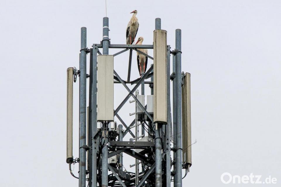 Majestätisch lassen die beiden Störche ihre Blicke über Amberg schweifen. Sie sitzen auf einem Funkmast nahe der Ostbayerischen Technischen Hochschule (OTH) Amberg-Weiden – und sitzen und sitzen. Am Freitag, 24. Mai, erregte das Storchen-Paar die Aufmerksamkeit einer Bürgerin, die ihre Beobachtung bei Oberpfalz-Medien meldete. Und tatsächlich: Über mehrere Stunden hockten die beiden auf ihrem Aussichtsposten am Rande der Altstadt und ließen sich beim "Chillen" nicht aus der Ruhe bringen. Ob sie bereits eines der Nester am Bootshaus oder auf dem Schlot von Guss Auer bezogen haben oder aber ein neues Heim suchen, das wird vorerst ihr Geheimnis bleiben.